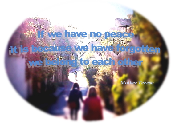 ..Peace begins with a smile. Smile five times a day at someone you don't really want to smile at; do it for peace. Let us radiate the peace of God and so light His light and extinguish in the world and in the hearts of all men all hatred and love for power.Today, if we have no peace, it is because we have forgotten that we belong to each other-that man, that woman, that child is my brother or my sister.’’